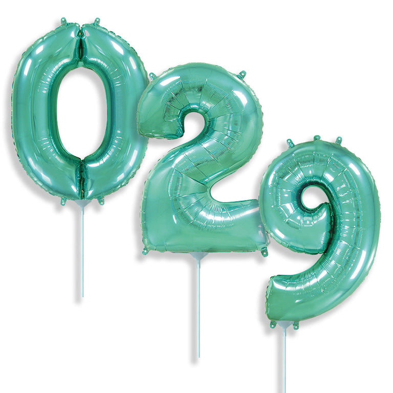 14" Airfill Only Flexmetal Brand Turquoise Number Balloons