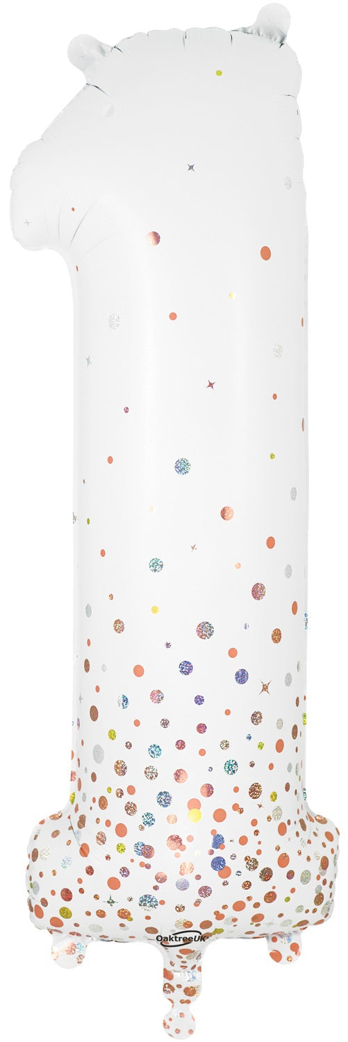 34" Number 1 Fizz Holographic Rose Gold Oaktree Foil Balloon