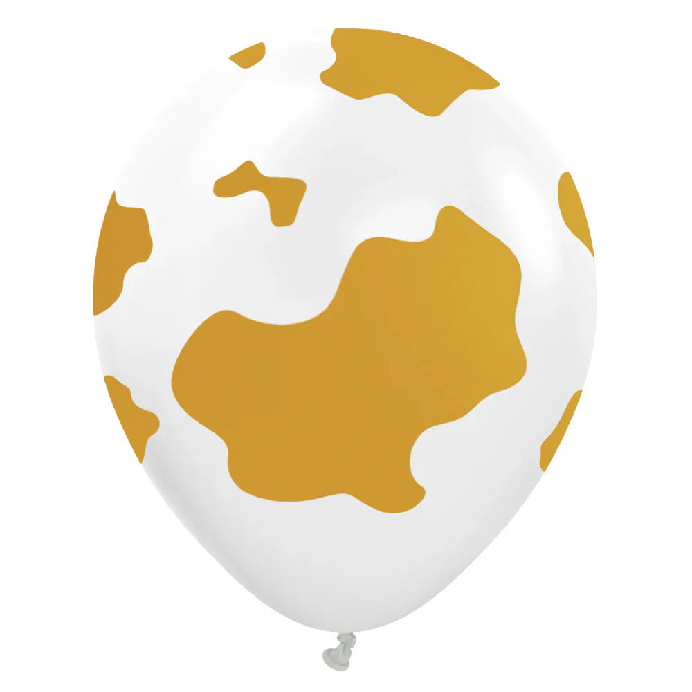 Globos de látex Kalisan Safari Cow White de 24" (dorados impresos, 1 por bolsa)