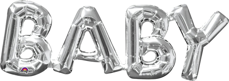 Paquete de globo plateado con frase gigante "BABY" de 26" x 9"
