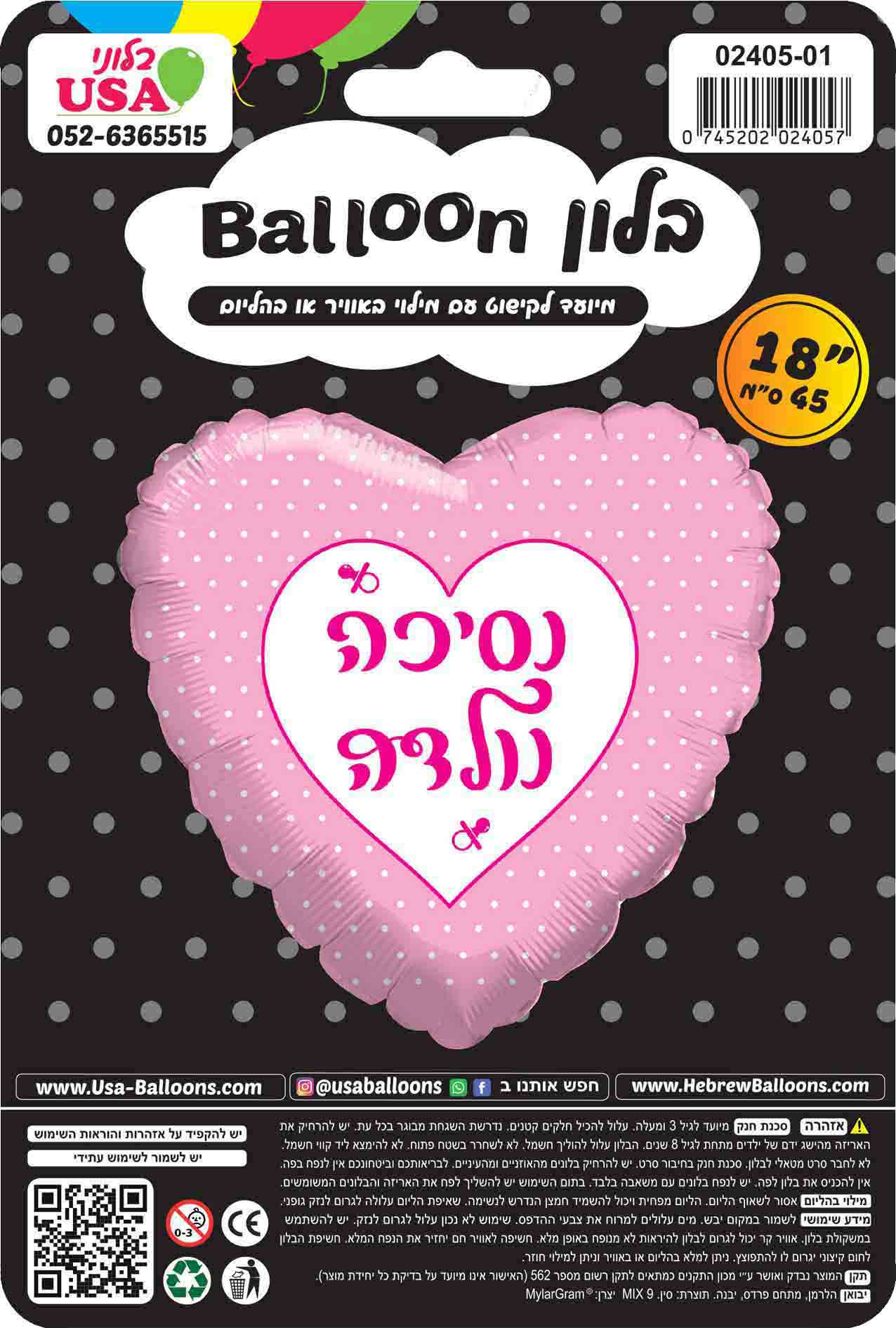 Globo de aluminio hebreo con corazón rosa punteado "Ha nacido una princesa" de 18"