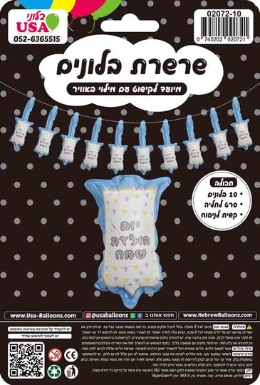 10pc Airfill Sólo Globo Feliz Cumpleaños Hebreo Cadena Azul