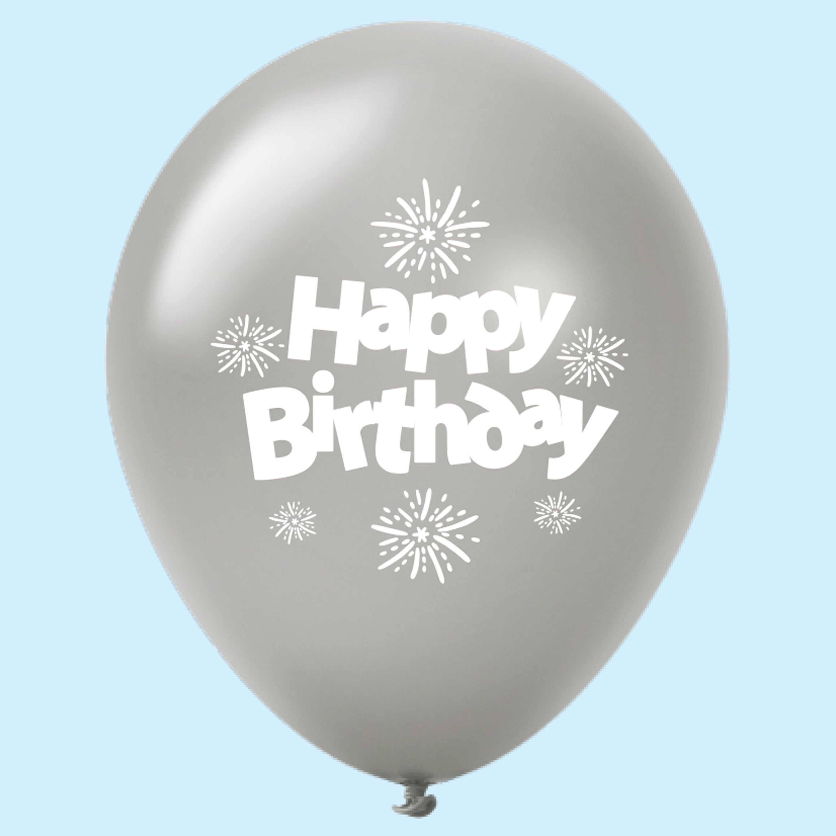 Globos de látex Happy Birthday Streamers de 11" plateados (25 por bolsa)