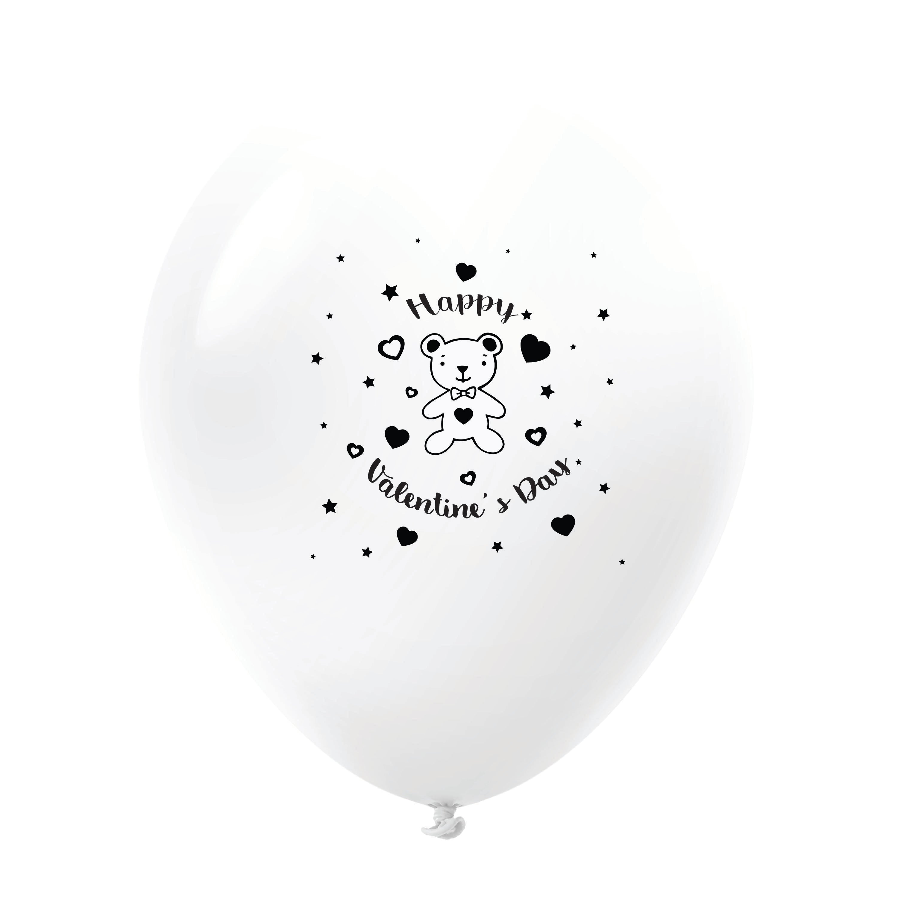 Globos de látex con osito Happy Valentine's Day de 11" (25 unidades), color blanco