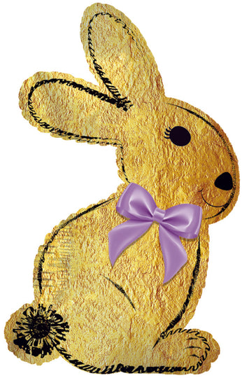 Globo de aluminio con envoltorio de conejito dorado solo con relleno de aire de 12"