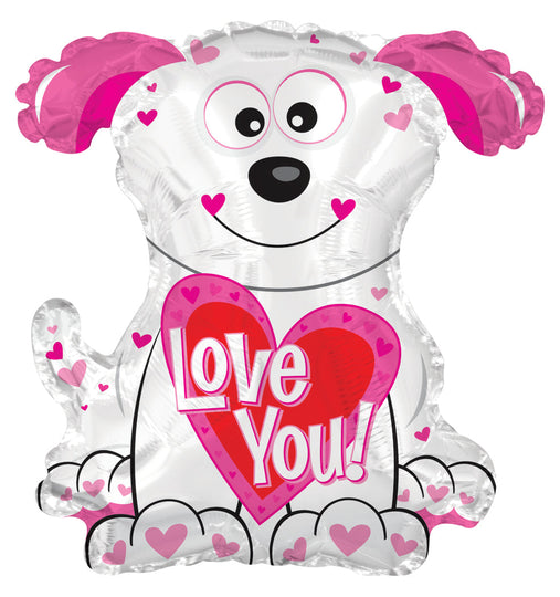 Globo de aluminio con forma de perrito rosa y blanco Airfill Only Love You de 12"