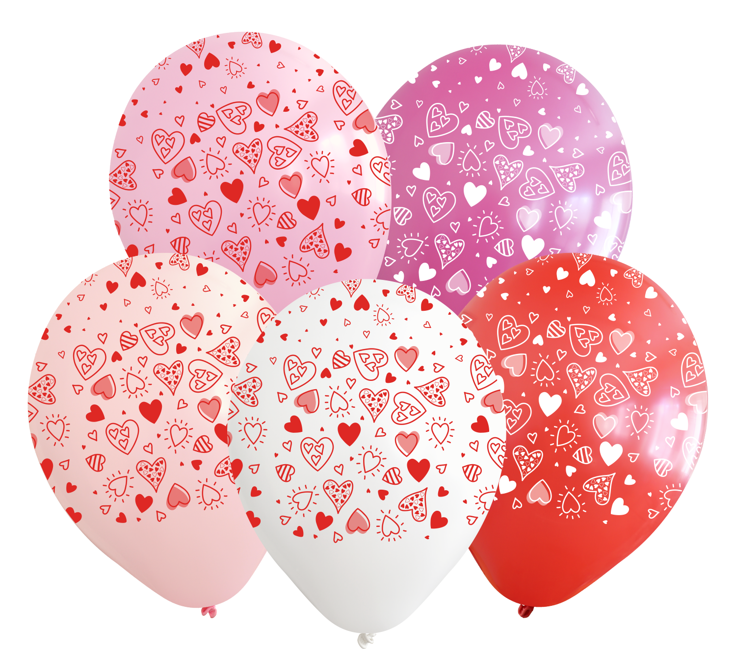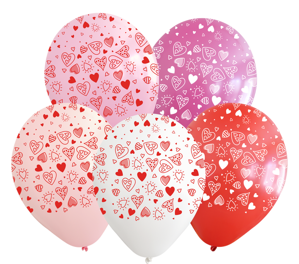Globos de látex de 12" con corazones variados (25 por bolsa) Impresión en 5 lados