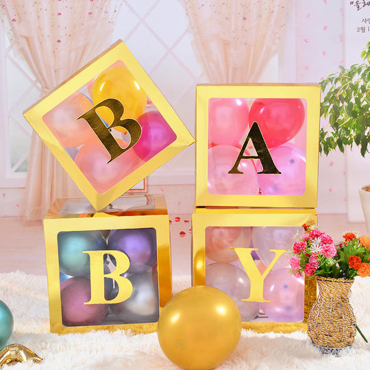Caja de Globos Rellenos Dorados de 12" (4 piezas) Usar con/sin pegatina "Bebé"