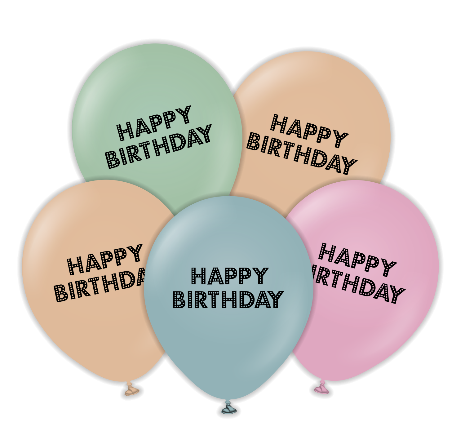 Globos de látex Kalisan retro impresos con diseño de feliz cumpleaños de 12.0 in (25 por bolsa)