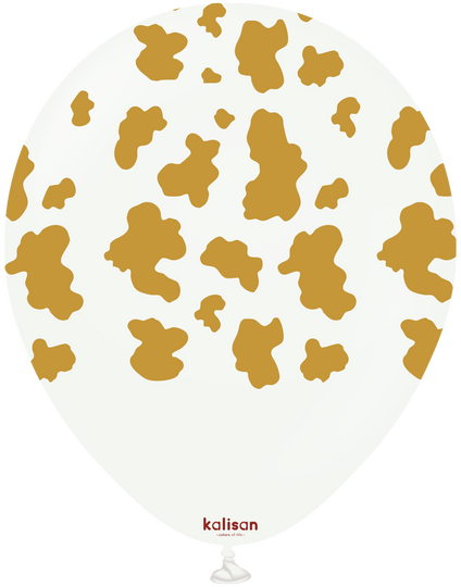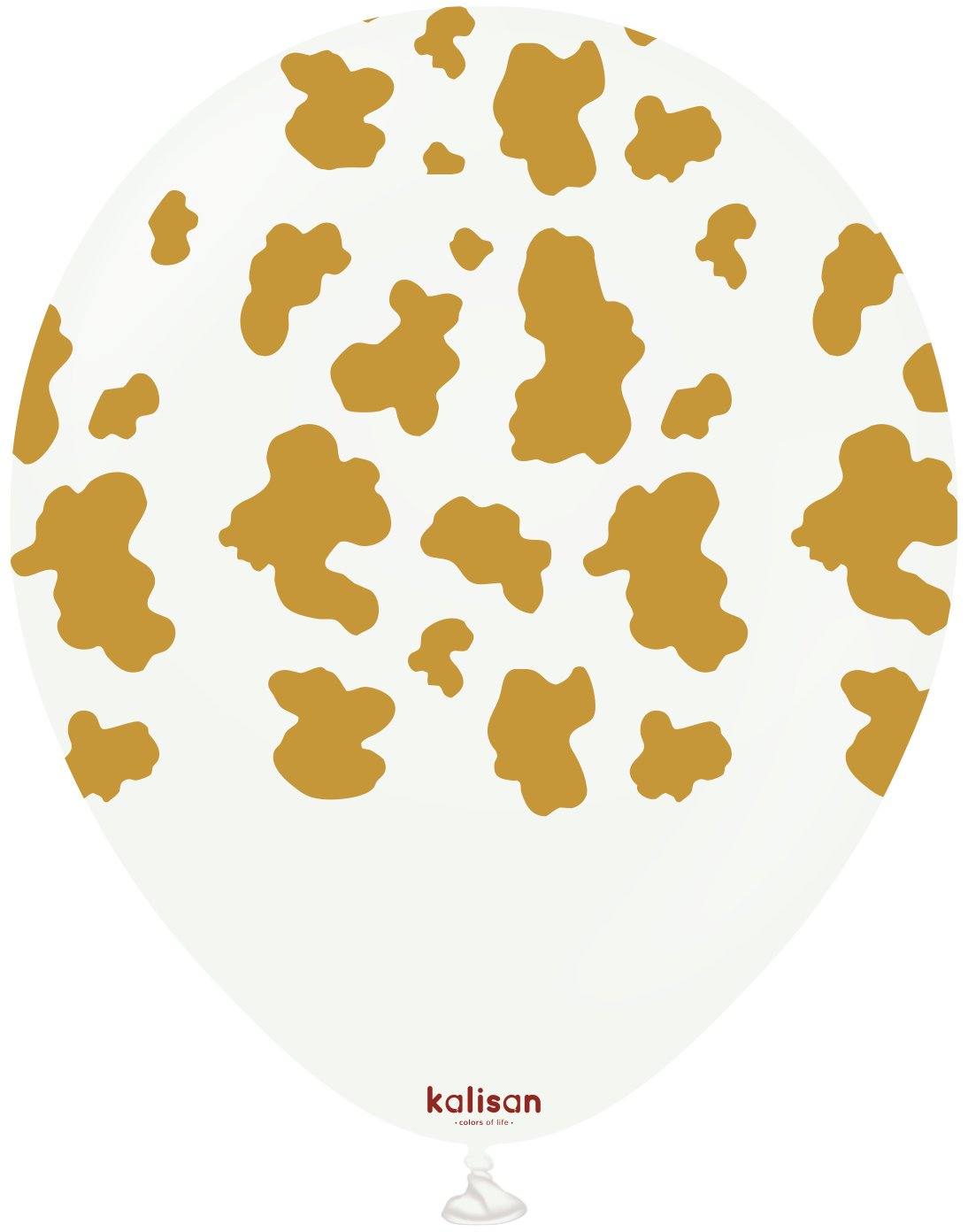 Globos de látex Kalisan Safari Cow White de 12.0 in (dorados impresos (25 por bolsa)