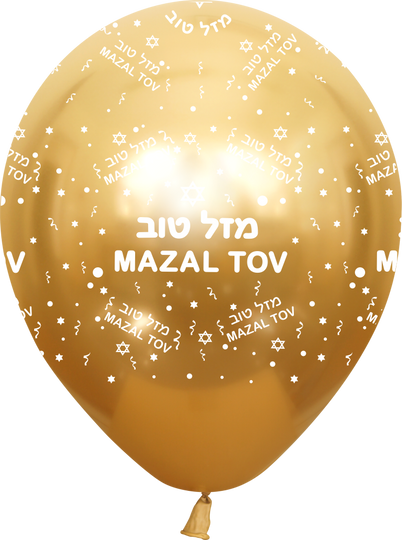 Globos de látex Kalisan con espejo dorado impreso Mazal Tov de 12" (25 por bolsa)