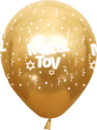 Globos de látex Kalisan con espejo dorado impreso Mazel Tov de 12" (25 por bolsa)
