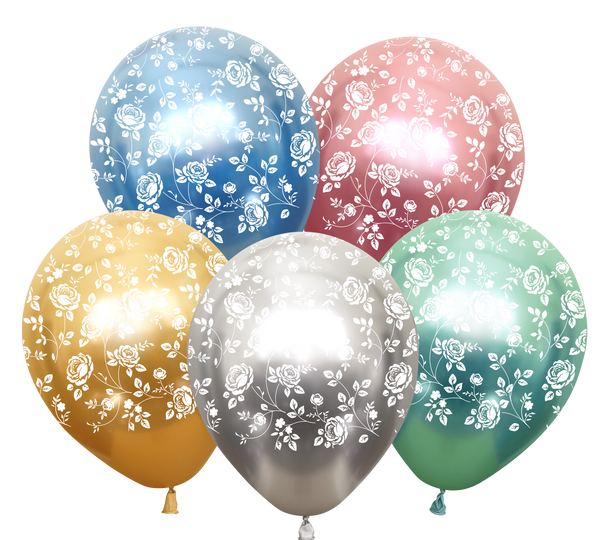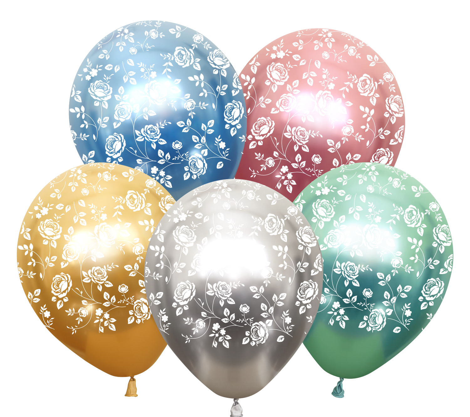Globos de látex con espejo de 12.0 in, varios colores, flores de damasco (25 por bolsa), impresión en 5 lados