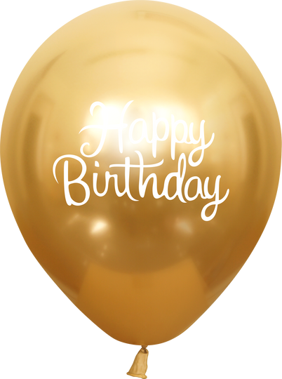 Globos de látex dorados con espejo de 12" Happy Birthday (25 por bolsa) Impresión en 2 lados