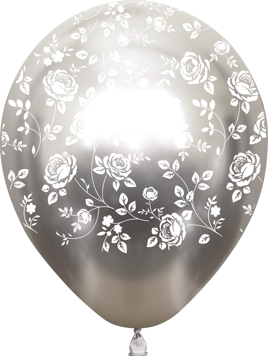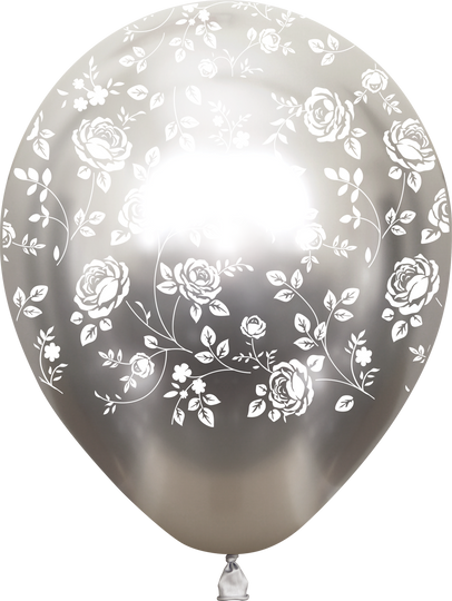 Globos de látex con forma de flor de damasco plateado espejo de 12" (25 por bolsa) Impresión en 5 lados