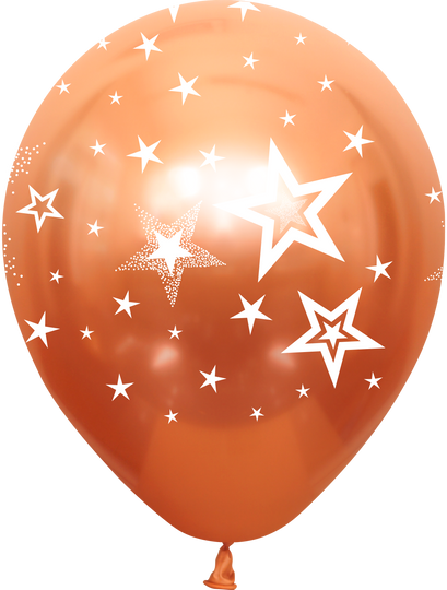 Globos de látex color cobre con estrellas espejadas de 12" (25 por bolsa) Impresión en 5 lados
