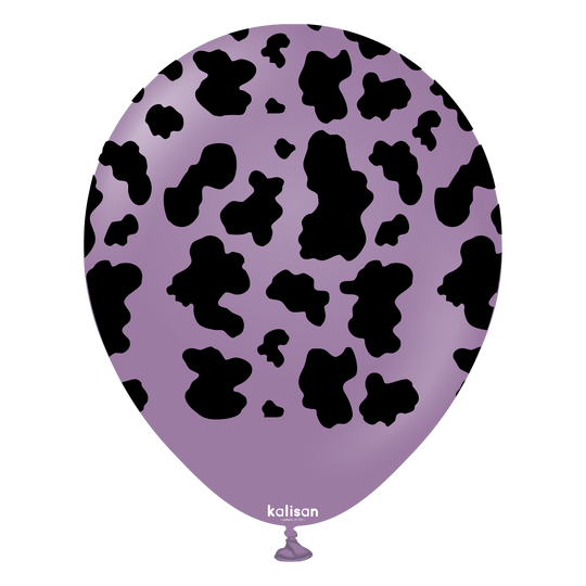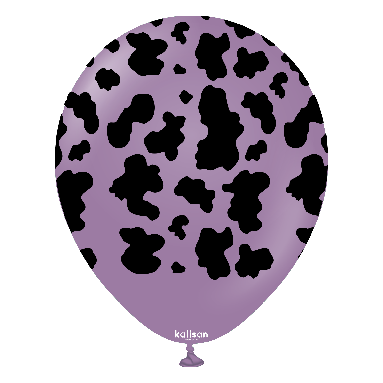 Globos de látex Kalisan de color lavanda con estampado de vaca Safari de 12" (25 por bolsa)