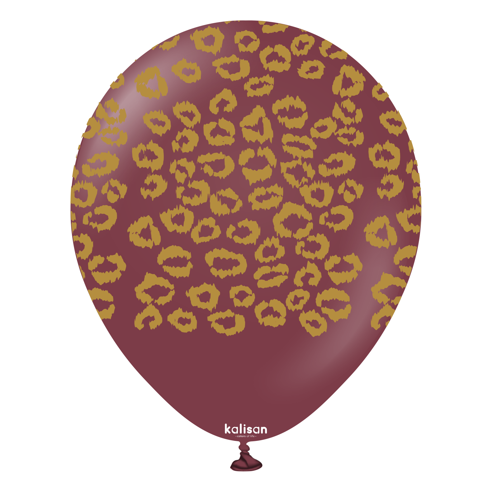 Globos de látex Kalisan estampados Safari Leopard Borgoña (dorado) de 12" (25 por bolsa)