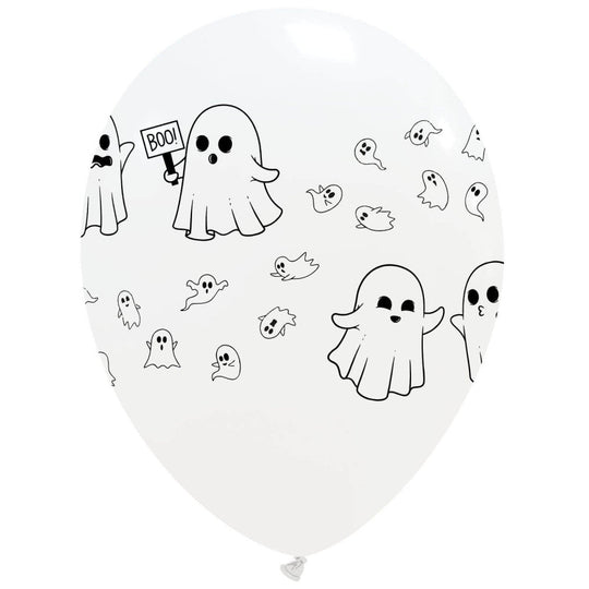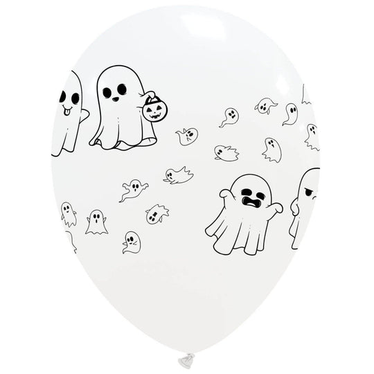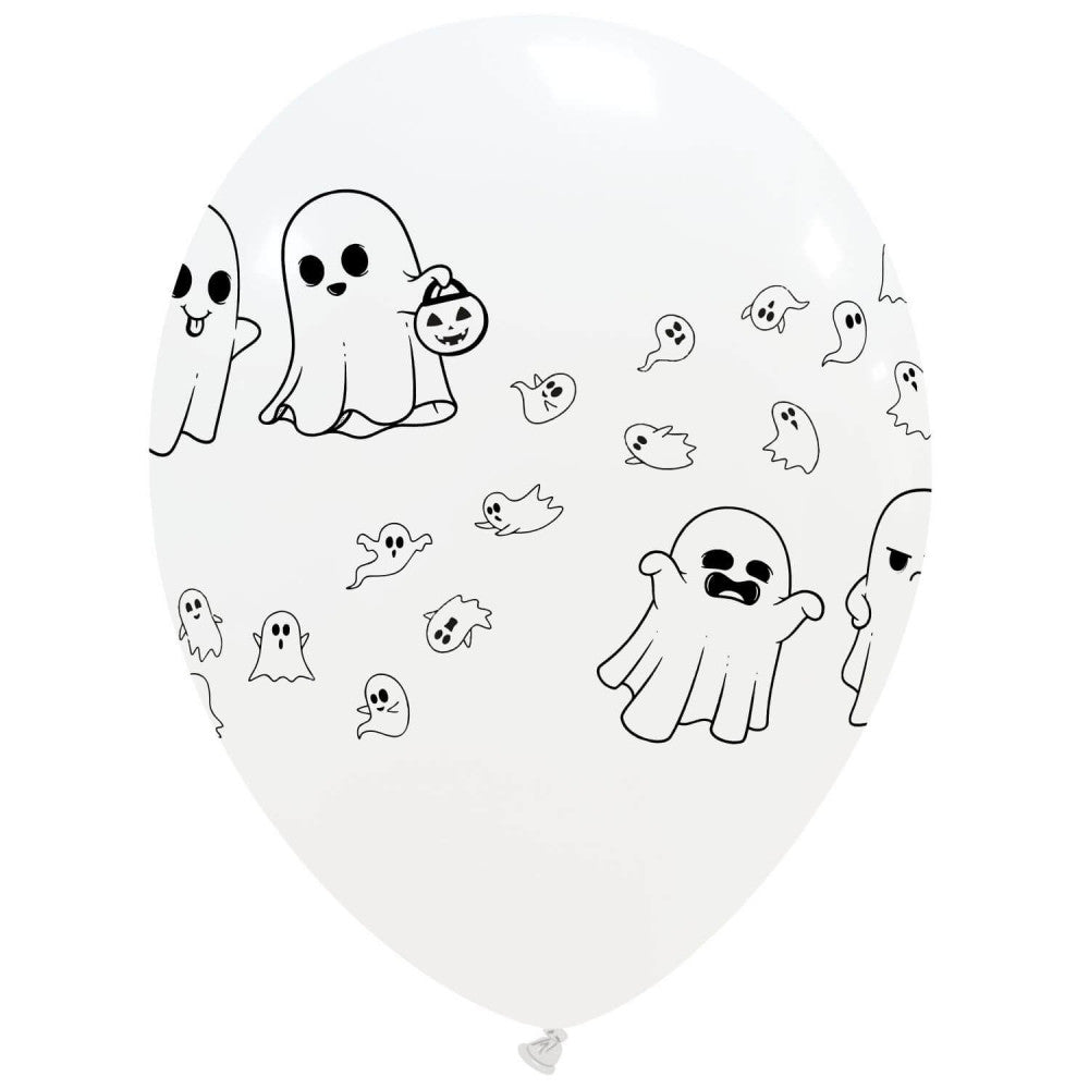 12" Halloween Ghost Party 4 Sided Print (25 Per Bag) Cattex Brand Printed Latex Balloons
