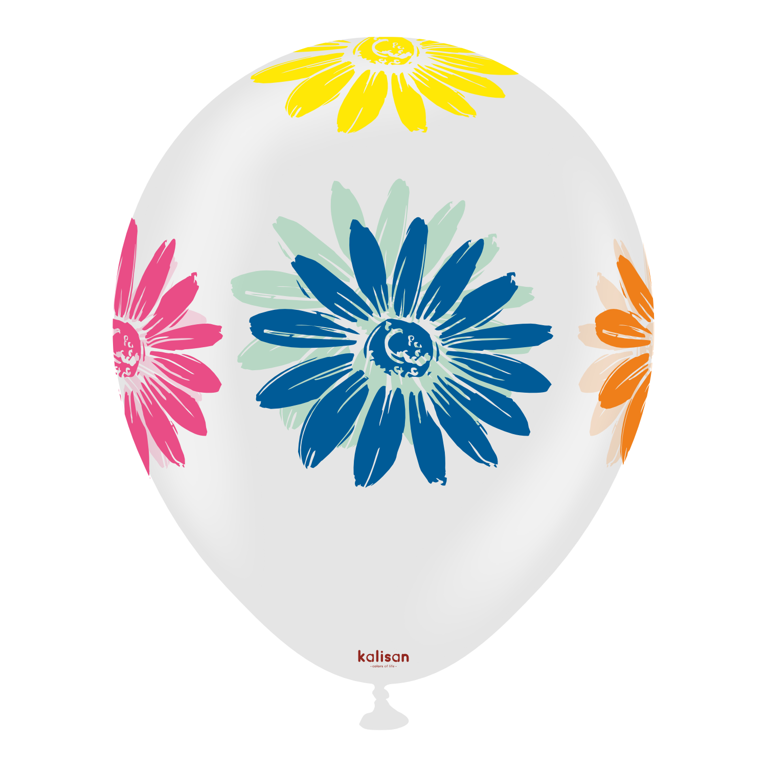 Vibrant floral design on Kalisan’s clear 12" latex balloons.