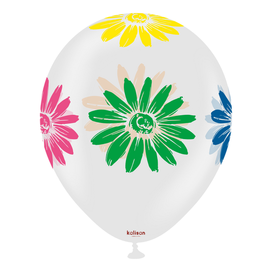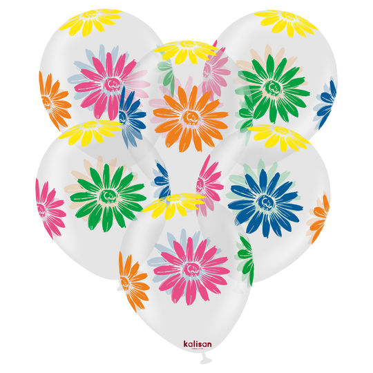 12" Kalisan 5 Color Print Colorful Flowers Clear Latex Balloons