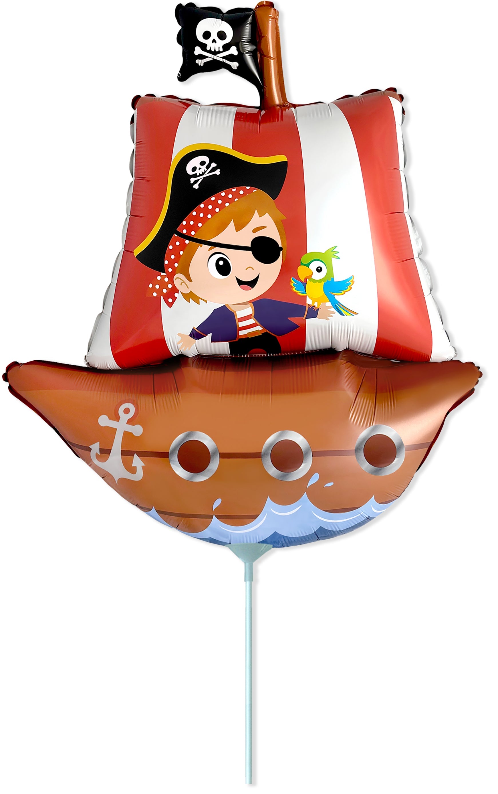 14" Airfill Only Kid Pirate Ship Foil Balloon