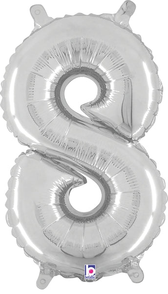 Globo plateado Megaloon Jr. con forma número 8, de 14" (solo relleno de aire, autosellante)