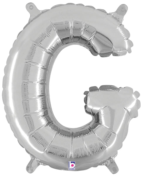 Globo plateado Megaloon Jr. con forma de letra G, relleno de aire (autosellante), de 14"