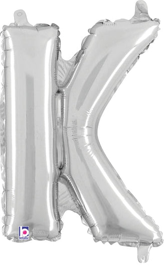 Globo plateado Megaloon Jr. con forma de letra K, relleno de aire (autosellante), de 14"