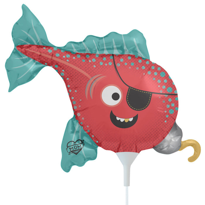 Globo de aluminio con forma de pez pirata autosellante solo con relleno de aire de 14"