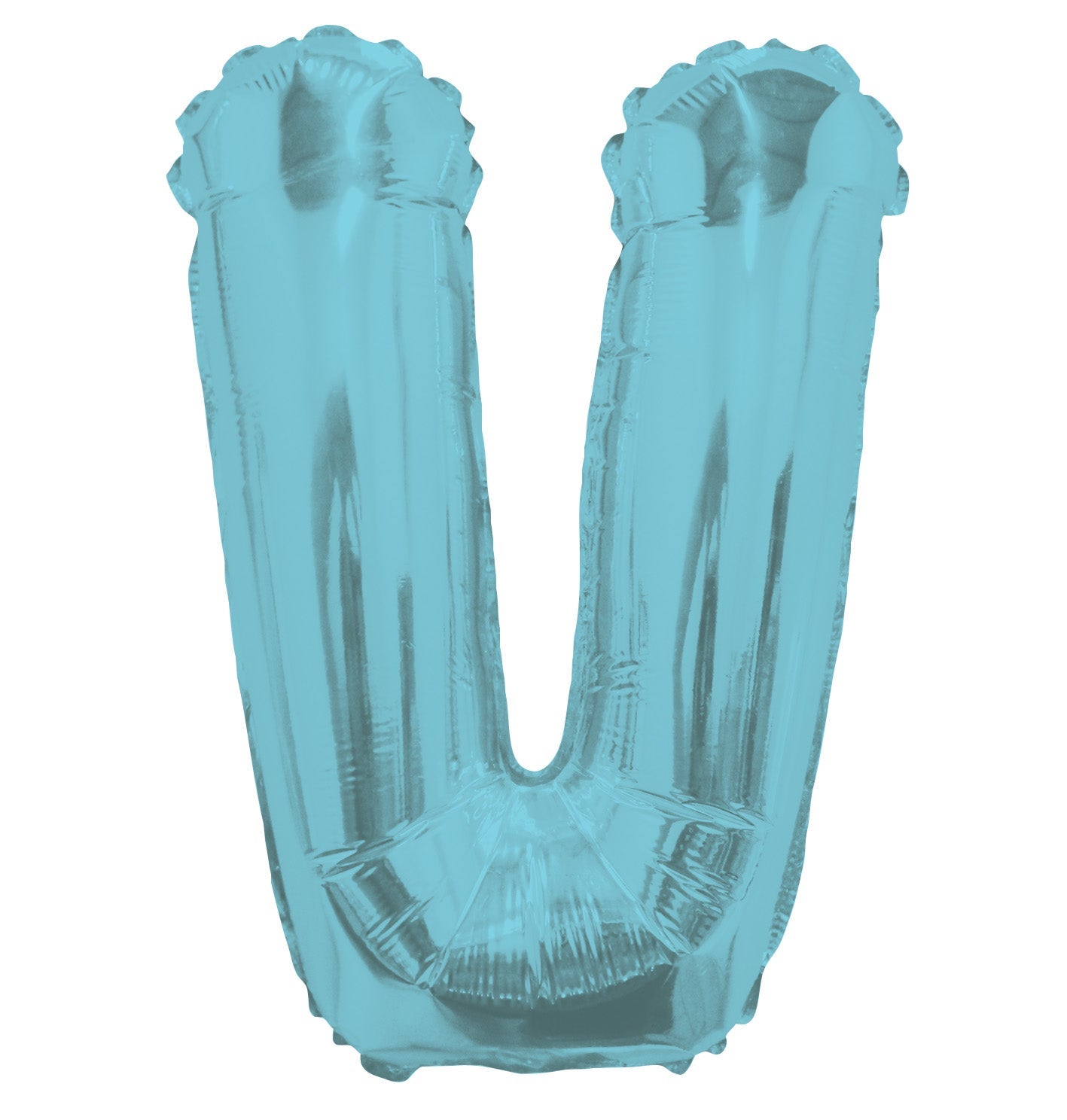 Globo azul claro con letra V Airfill de 14" con válvula únicamente
