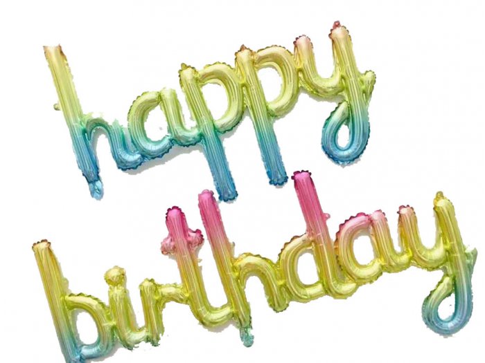 Celebrate birthdays in vibrant style with our 16" Airfill Only Happy Birthday Joint Rainbow Kit Foil Balloons. These eye-catching balloons feature a beautiful gradient of colors, transitioning from green to blue, pink, and yellow. The balloons spell out "happy birthday" in a playful script font, adding a festive touch to any birthday celebration. Perfect for decorating party spaces, these foil balloons are designed for air filling only and will make your special day even more memorable.