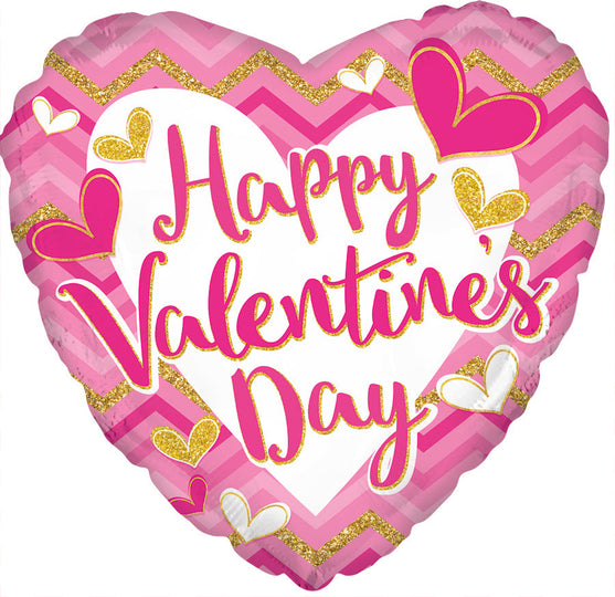 Globo de aluminio Cheveron rosa Feliz Día de San Valentín de 17"