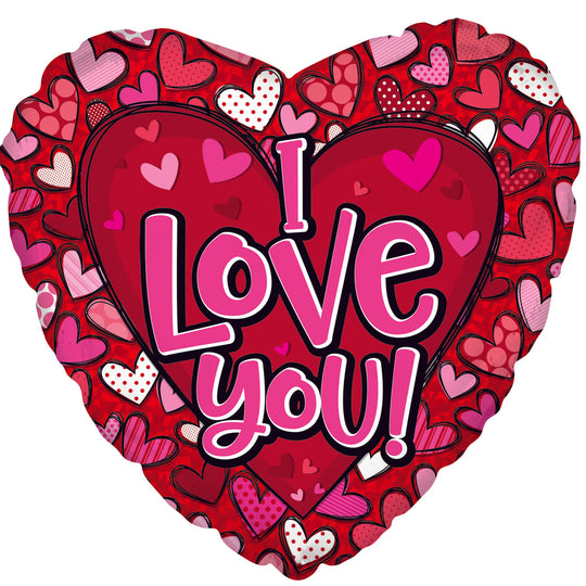 Globo de aluminio con diseño de corazones y te amo de 17"