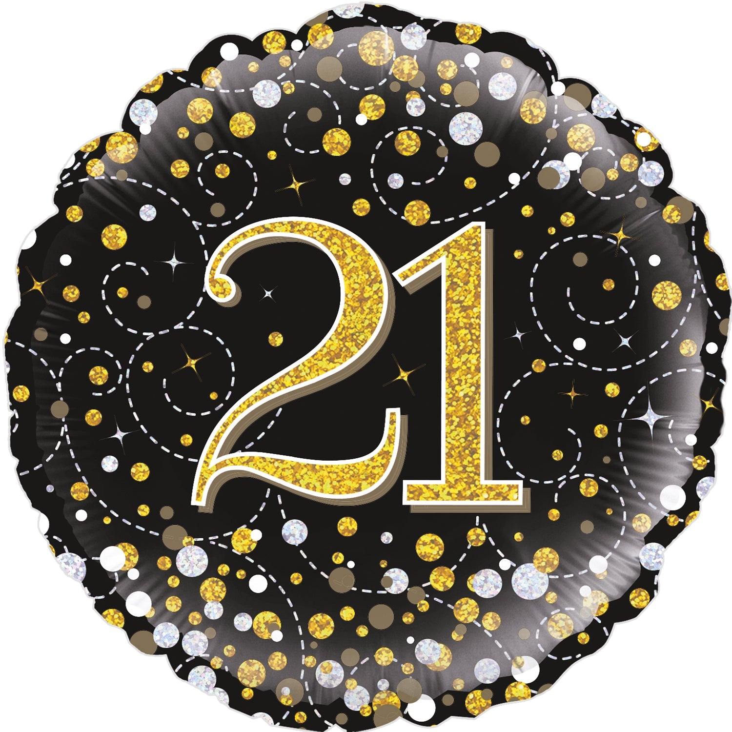 Globo holográfico de hoja de roble negro y dorado del 21º cumpleaños Sparkling Fizz de 18"