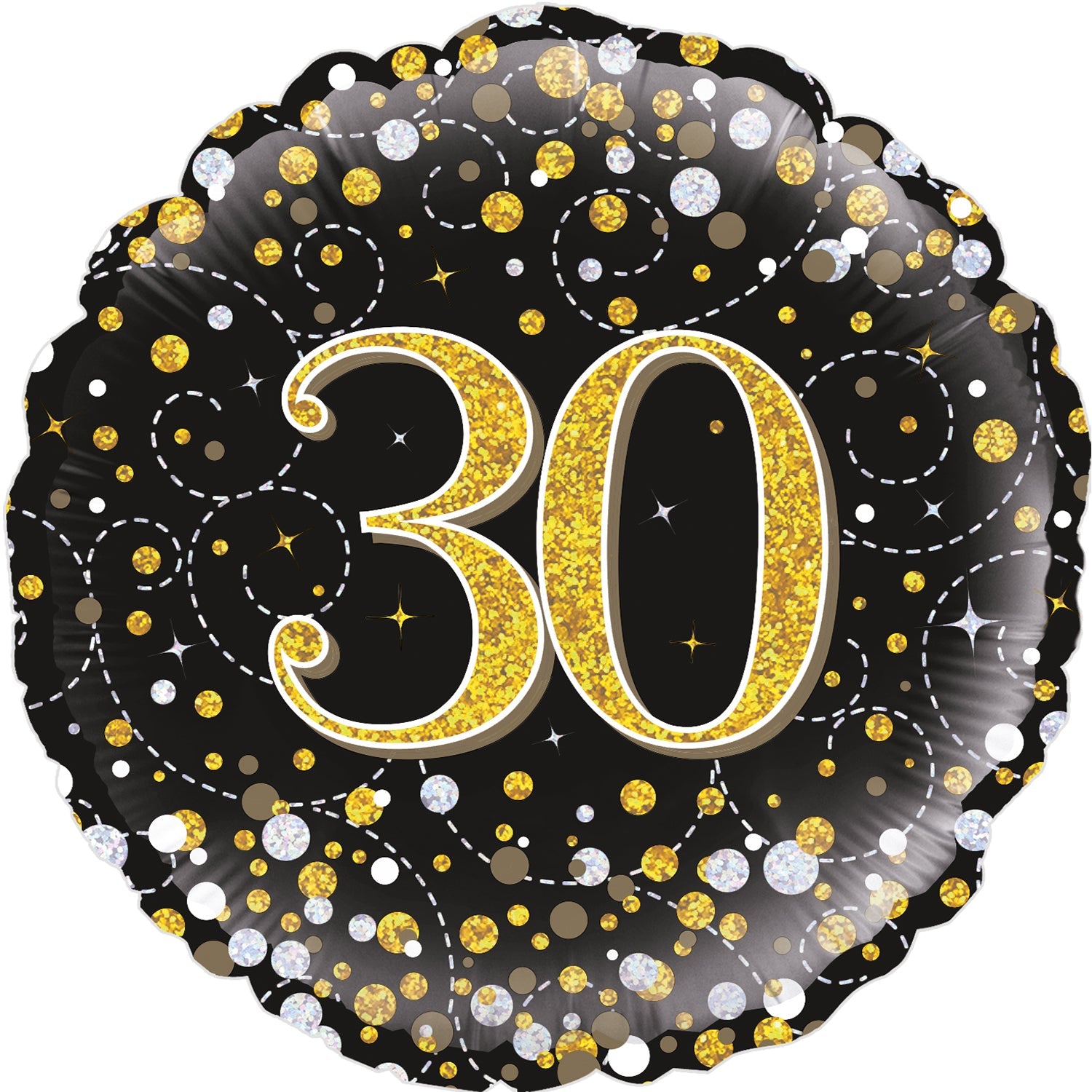 Globo holográfico de hoja de roble negro y dorado para cumpleaños número 30 de Sparkling Fizz de 18"