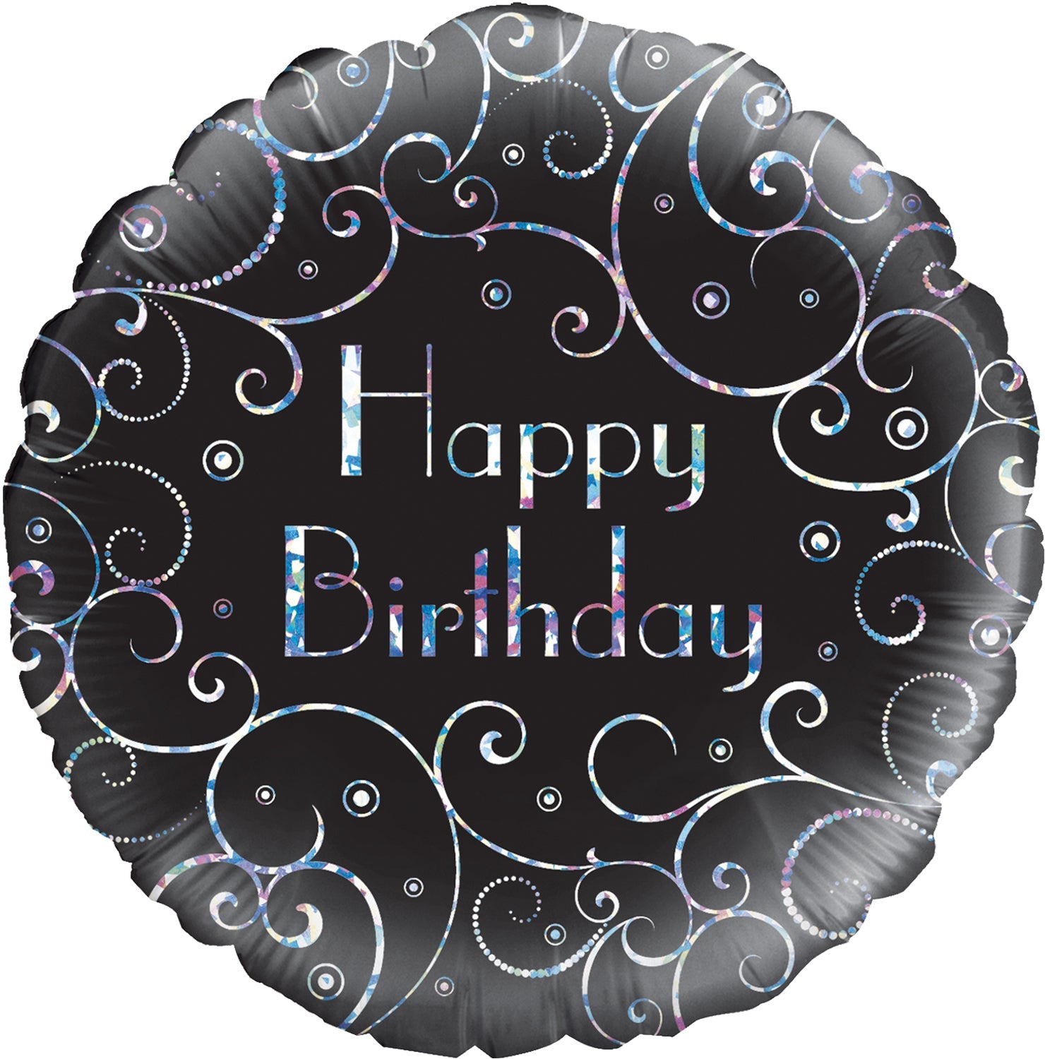 Globo holográfico de aluminio Oaktree con remolinos negros de cumpleaños de 18"