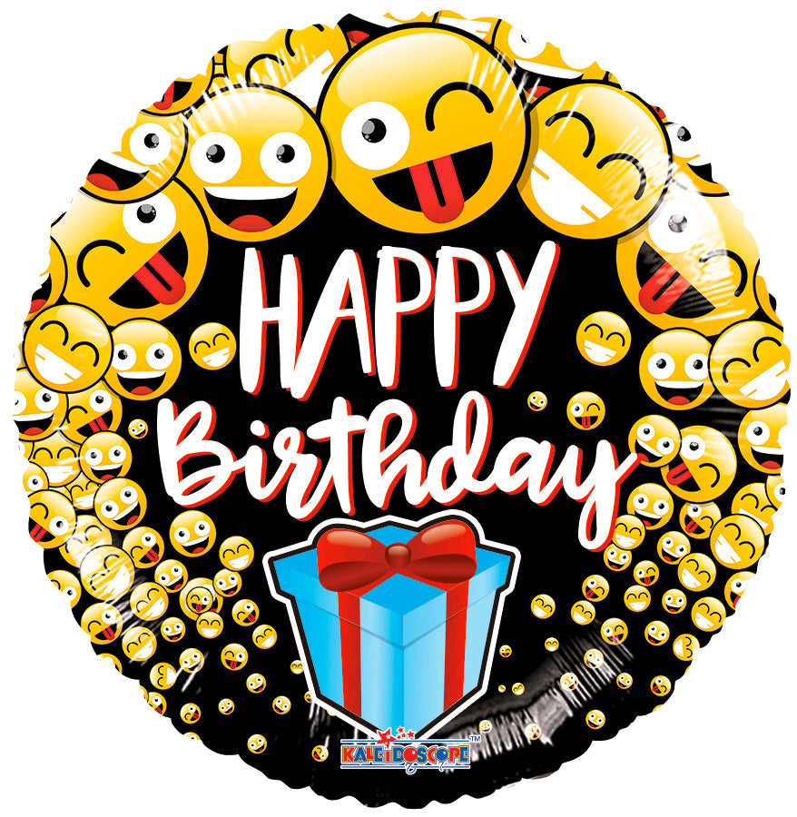 Globo de aluminio con regalo y emoticones de cumpleaños de 18"