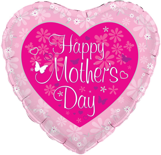Globo de aluminio Oaktree para el día de la madre con forma de corazón y mariposa de 18"