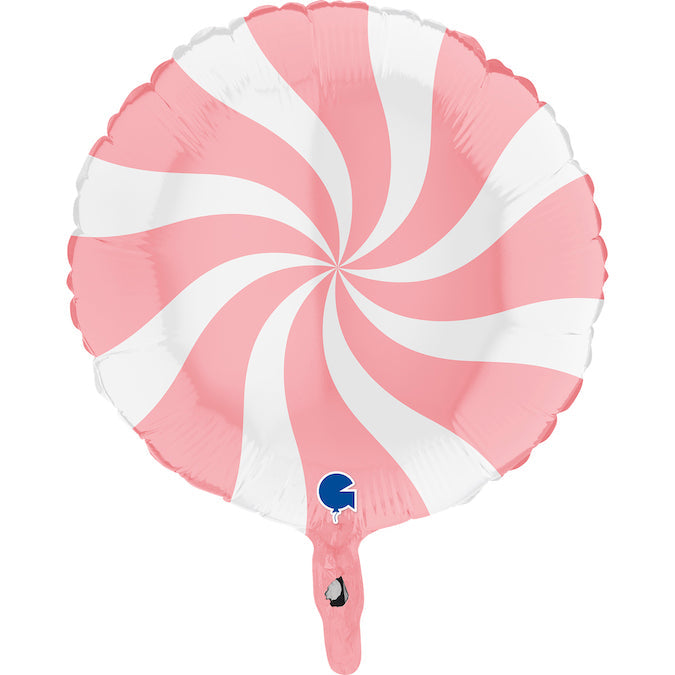 Globo metalizado Candy Swirly blanco-rosa mate de 18"