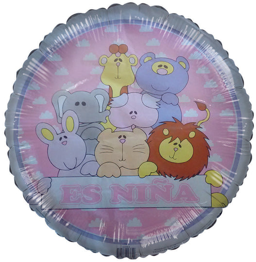 Globo rosa y blanco con lindos animales del zoológico español Es niña de 18"