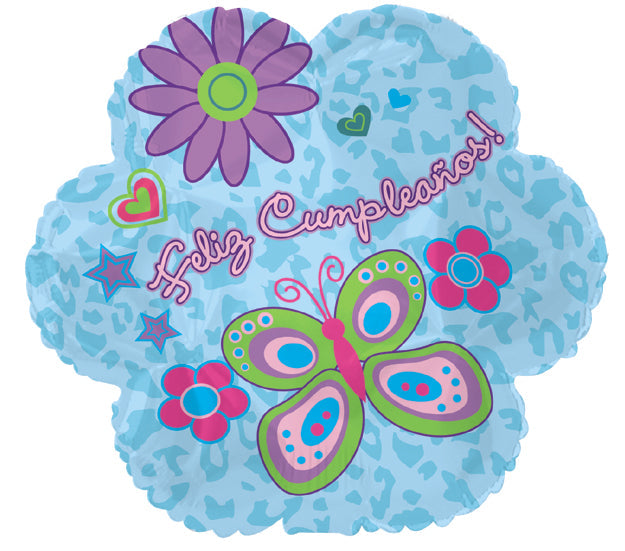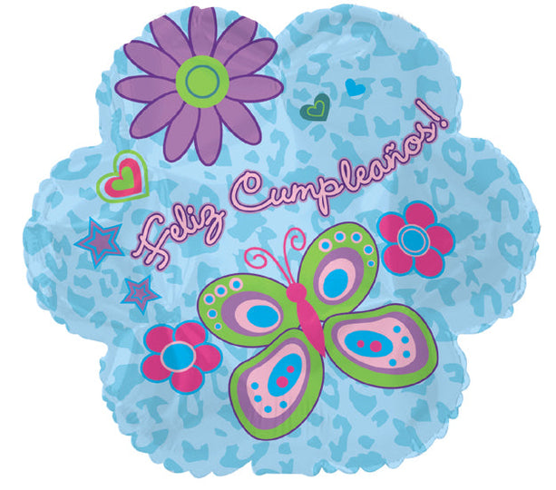 Globo con forma de flor Feliz Cumpleanos de 18" (español)