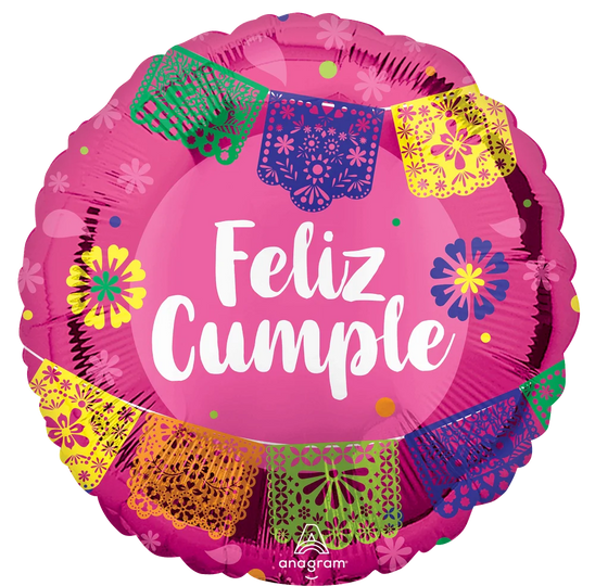 Globo de aluminio Feliz Cumpleaños Papel Picado (español) de 18"