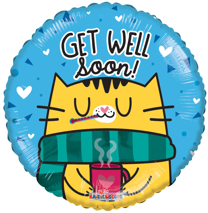 Globo metálico redondo con diseño de gato "Que te mejores pronto" de 18"