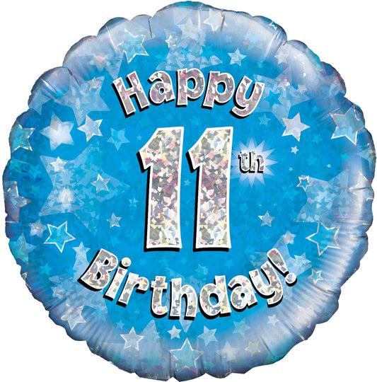 Globo de aluminio holográfico azul de roble feliz cumpleaños número 11 de 18"
