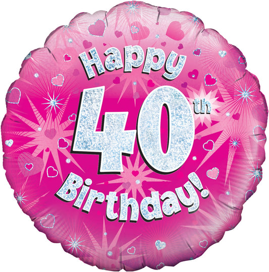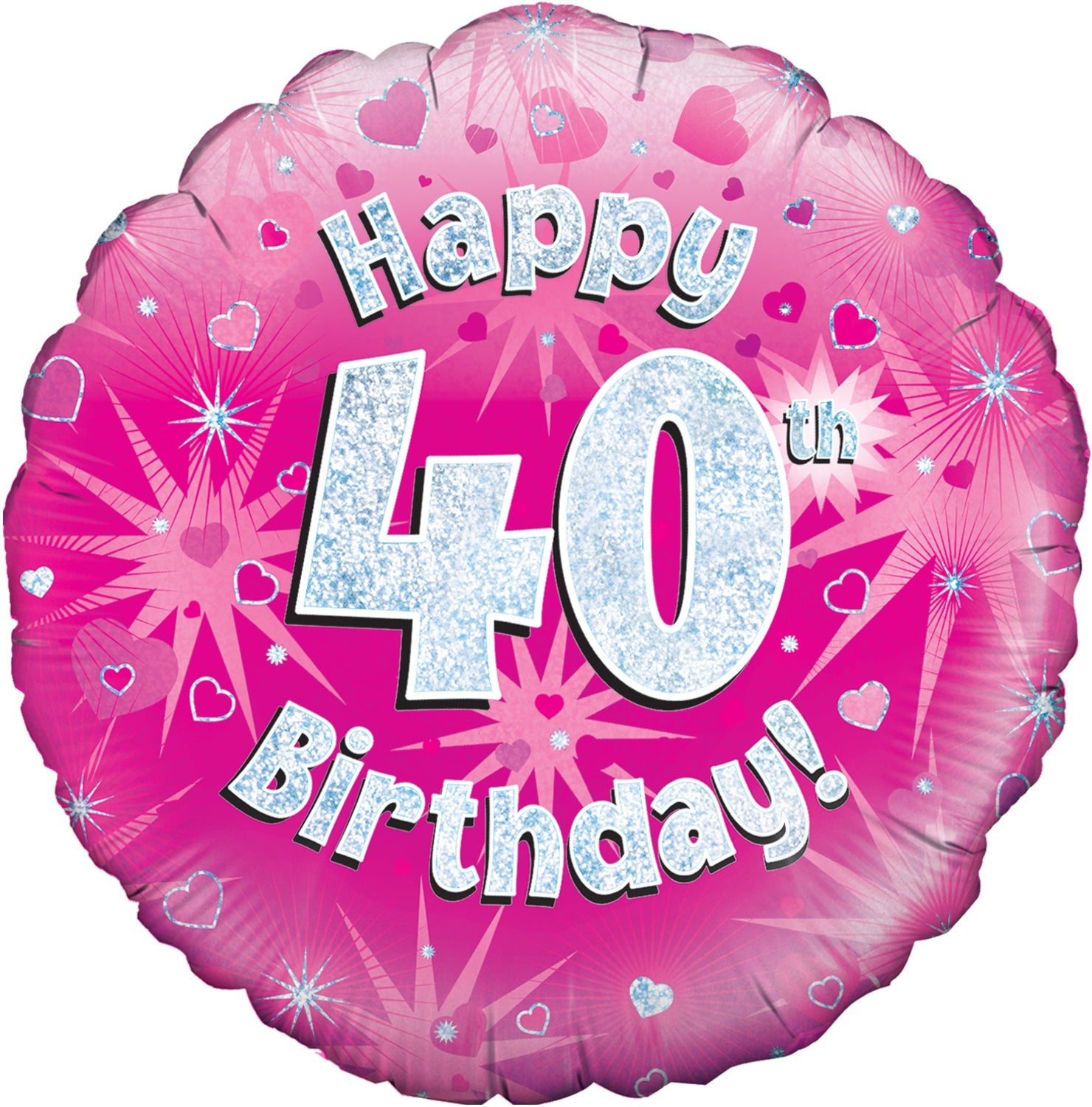 Globo holográfico de hoja de roble rosa feliz cumpleaños número 40 de 18"