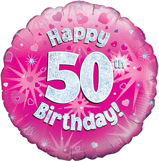 Globo holográfico de hoja de roble rosa feliz cumpleaños número 50 de 18"