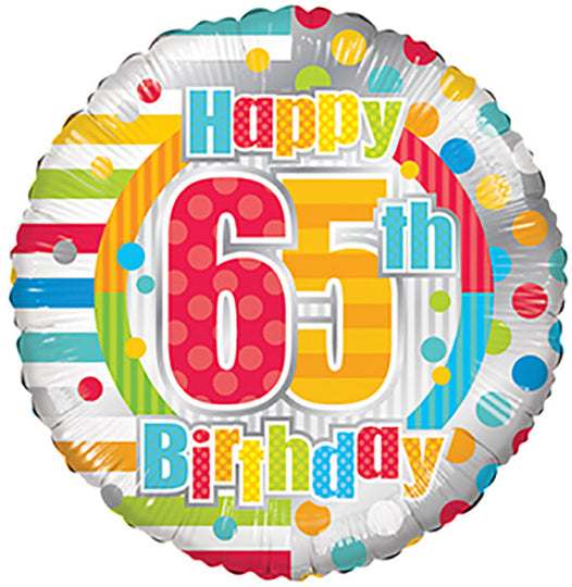 Globos de puntos y líneas de feliz cumpleaños número 65 de 18"