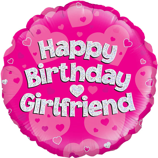 Globo holográfico de hoja de roble rosa con diseño de feliz cumpleaños para novia de 18"