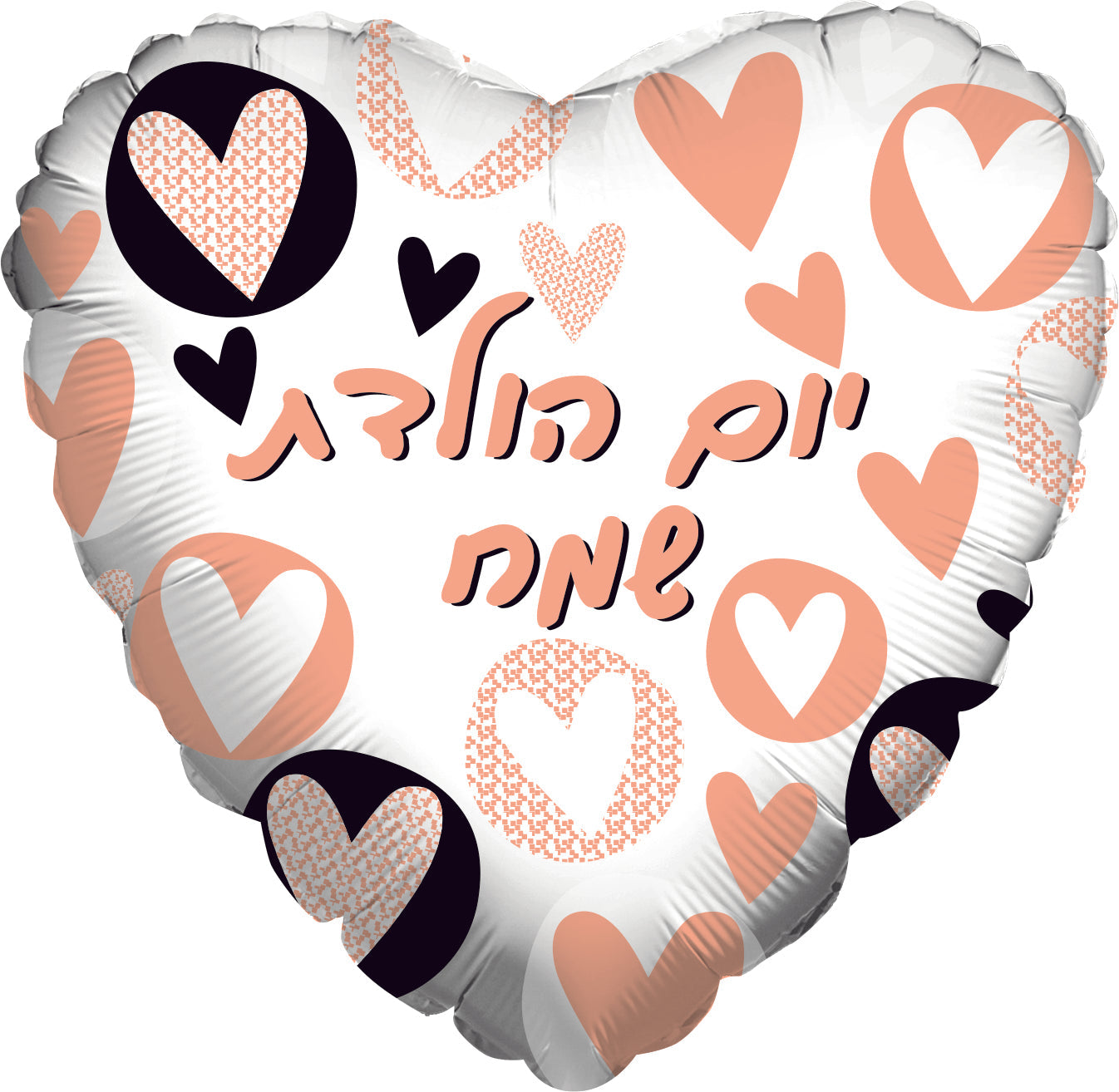 Globo de aluminio hebreo con corazones de oro rosa y feliz cumpleaños de 18"